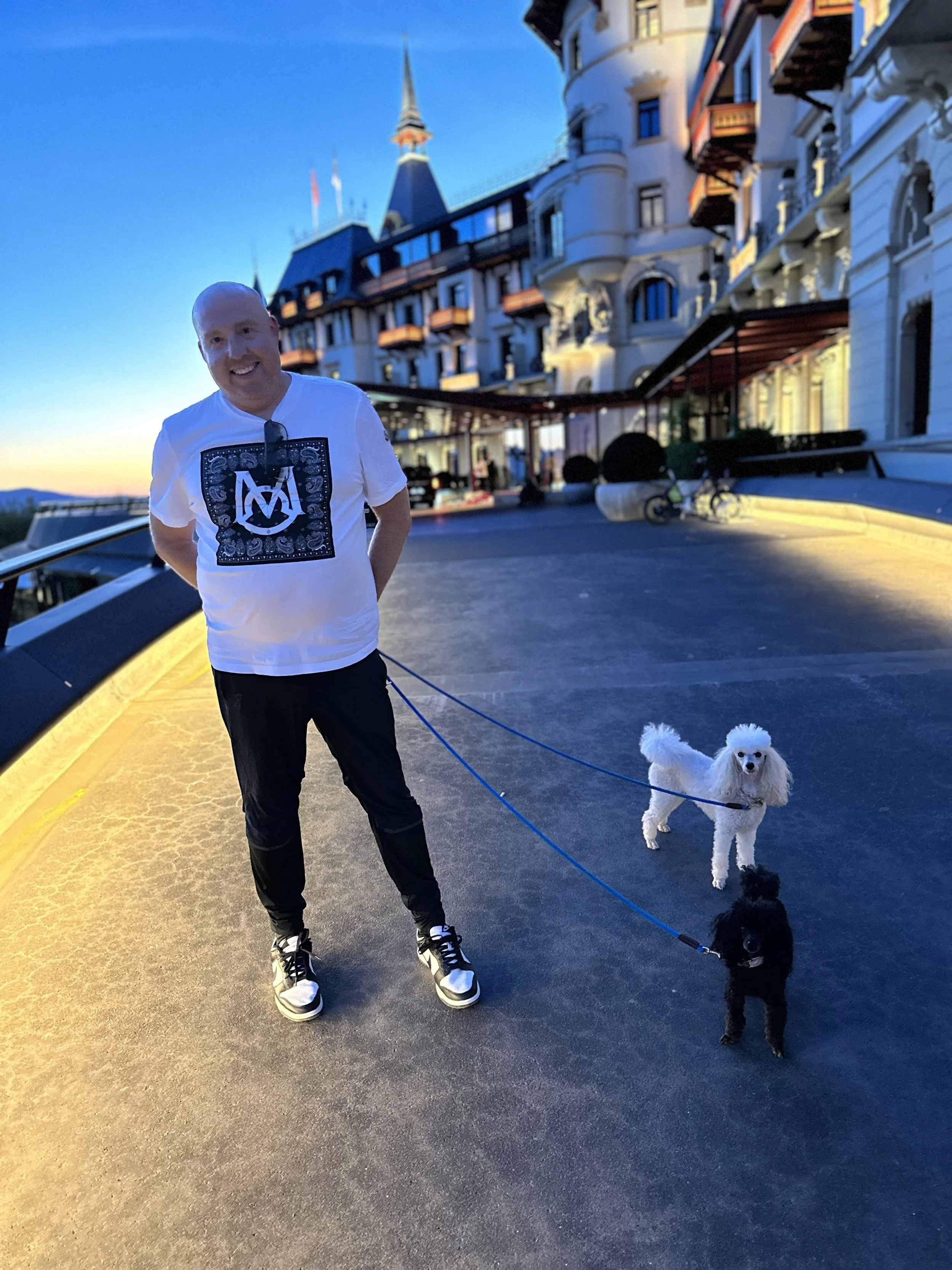 Luxurious with wonderful pool and spa that is a majestic castle overlooking Zurich. Here is a photo of Josh and the poodles!